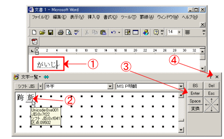 Wordで外字を入力するときは、次のように操作します。 @ 「がいじ」と入力後、[F5]キーを押す。