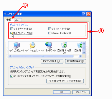 B [全般]タブをクリックする。 C 表示したいアイコンをチェックする。 |