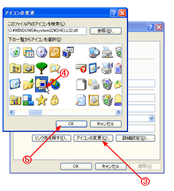 B [アイコンの変更]ボタンをクリックする。 D [OK]ボタンをクリックする。 |