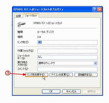 ショートカットのリンク先を探す |