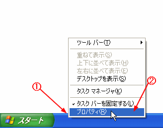 @ タスクバーを右クリックする。 |
