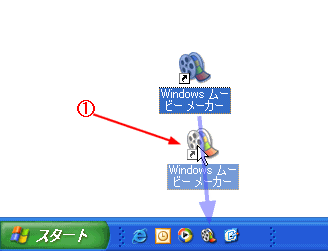 [クイック起動]ツールバーにプログラムにアイコンを追加すると、簡単に起動できるようになります。 @ デスクトップにあるショートカットを[クイック起動]ツールバーへドラッグ&ドロップする。