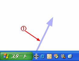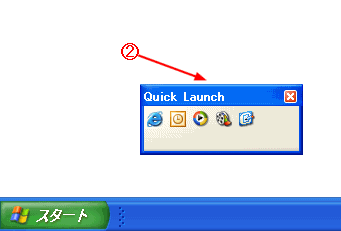 通常のツールバーをフローティングツールバーにします。この設定をする前に、タスクバーの固定を解除する を実行してください。 @ ツールバーのタイトル部分をクリックすると、マウスポインタの形が変わるので、デスクトップへドラッグ&ドロップする。