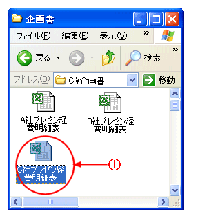 キーボードからファイル名の先頭文字を入力すると、ファイルを選択できます。 @ キーボードで[C]と入力すると選択できる。
