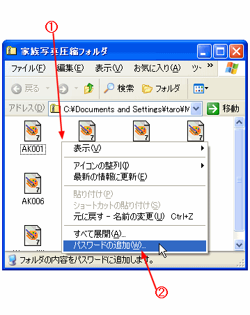 @ 圧縮フォルダ内の空いている部分を右クリックする。 |