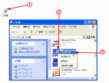 @ [ごみ箱]をダブルクリックする。 A 戻したいファイルを右クリックする。 B [元に戻す]をクリックする。