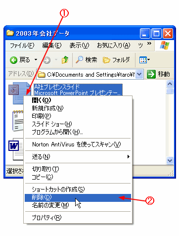 @ 不用になったファイルを右クリックする。 |