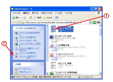 B 確認ダイアログボックスが表示されたら、[はい]ボタンをクリックする。 削除されたファイルやフォルダを、一旦、ごも箱の保管されます。 |