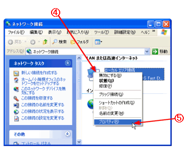 C 設定するLANカードを右クリックする。 D [プロパティ]をクリックする。 |