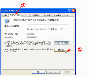 コンピュータ名あるいはワークグループ名を変更します。 @[スタート]ボタンをクリックする。 A