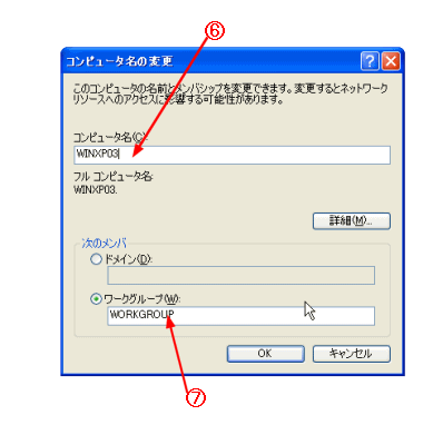 E コンピュータ名を変更する。 F ワークグループ名を変更する。 |