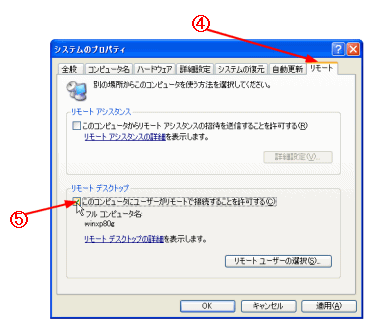 C [リモート]タブをクリックする。 D このボックスをチェックする。 |