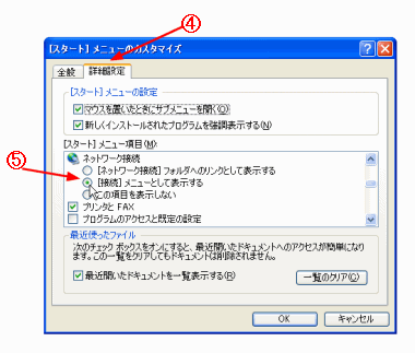 [スタート]メニューにネットワーク接続メニューを表示します。