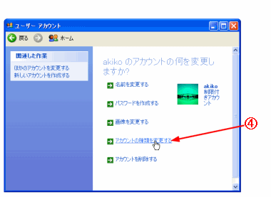 C [アカウントの種類を変更する]をクリックする。 |