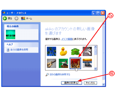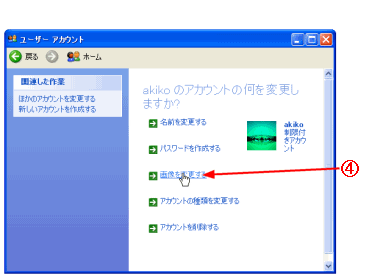 @ コントロールパネルの[ユーザーアカウント]を開く。 A [アカウントを変更する]をクリックする。