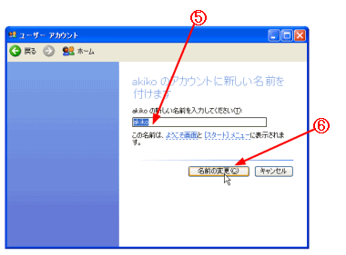 @ コントロール パネルの[ユーザーアカウント]を開く。 A [アカウントを変更する]をクリックする。