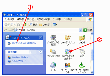 A [プログラムの追加と削除]アイコンをダブルクリックする。 |