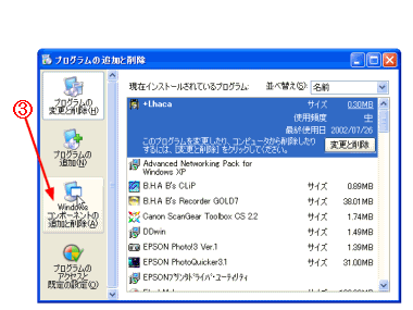 B [Windowsコンポーネントの追加と削除]をクリックする。 |