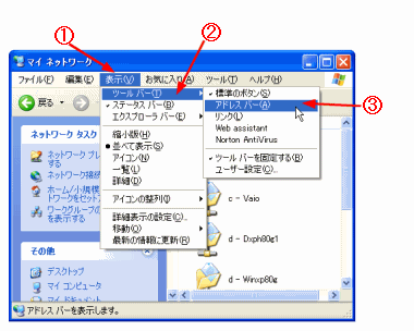 ウィンドウにアドレスバーを表示する |