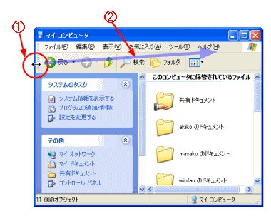 @ マウスポインタをツールバーの左端に移動すると形が変化する。 A 移動したい位置までドラッグする。