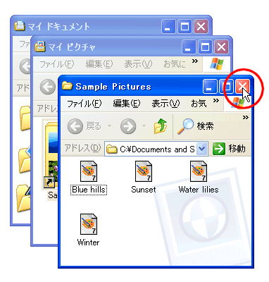 @[Shift]キーを押しながら[閉じる]ボタンをクリックする。