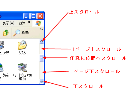 スクロールバーを操作してウィンドウの内容を確認します。