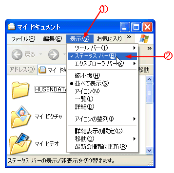 A [ステータスバー]をチェックする。